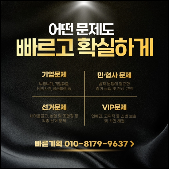 철저한 비밀보장과 빠른 대응으로 당신의 문제 해결을 돕습니다.